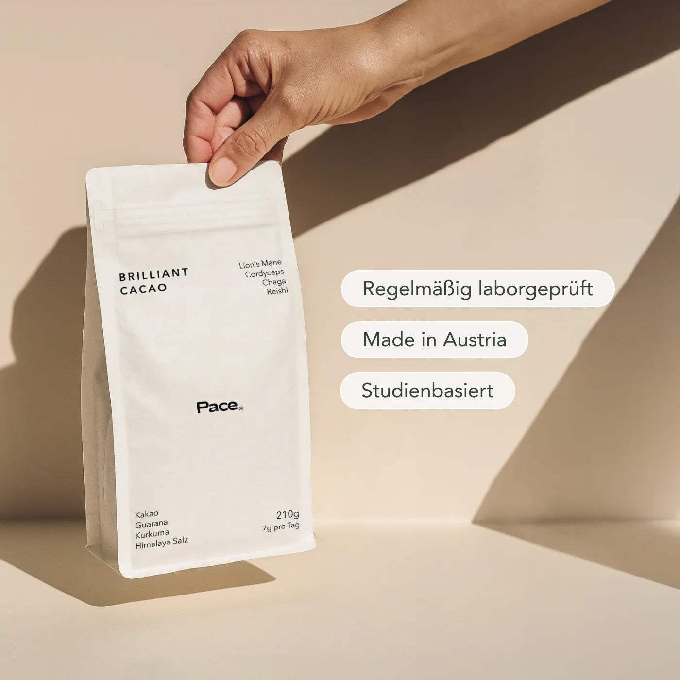 "Mit natürlichen und effektiven Lösungen wie unserem Brilliant Cacao möchten wir dir im Alltag zu mehr Energie und Wohlbefinden verhelfen. In Zusammenarbeit mit führenden Ärzten und Experten im Bereich Gesundheit und Longevity haben wir ein Produkt entwickelt, das dir hilft, dein volles Potenzial auszuschöpfen. Weil wir von der Qualität überzeugt sind, gewähren wir dir ein erweitertes Rückgaberecht von 60 Tagen. Sollte Brilliant Cacao doch nicht zu dir passen, kannst du die Bestellung an uns zurückgeben – ganz unkompliziert. "